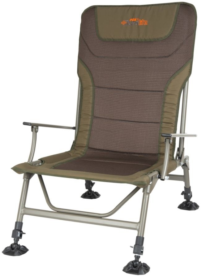 Fox Duralite XL este un scaun pentru pescuit cu suport pentru brate, construit pe un cadru cu profil rotund din aluminiu tratat anticoroziune. Spatarul si sezutul sunt fabricate din polyester rezistent la uzura. De jur imprejurul saltelei de pe spatar si de pe sezut, scaunul dispune de un perimetru din polyuretan rezistent la murdarie si uzura. Scaunul se poate plia pentru un transport facil.