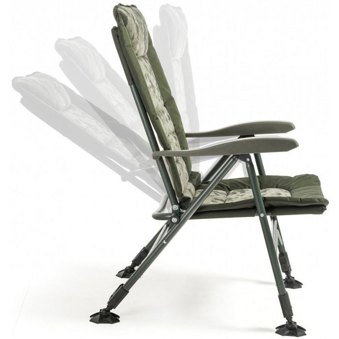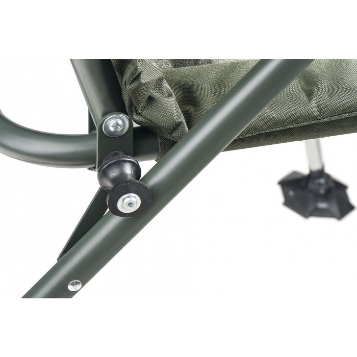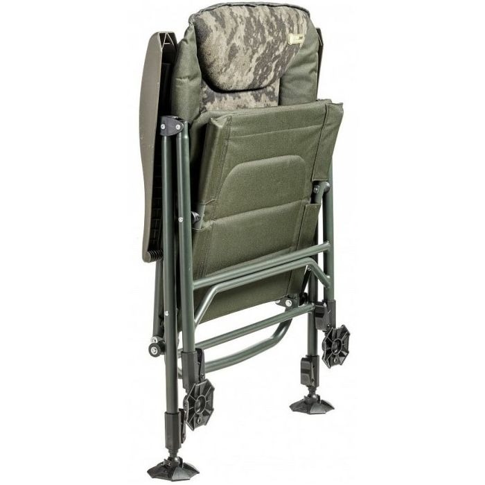 Picioarele telescopice reglabile cu talpici anti-alunecare asigură o stabilitate perfectă pe terenuri accidentate. Sistemul său inovator de plicare rapidă prin ridicarea suporturilor pentru antebrațe – care culisează ușor pe un sistem cu role – și perna integrată pe tot profilul fac din acesta un scaun inteligent și foarte practic pentru pescuitul din mișcare.