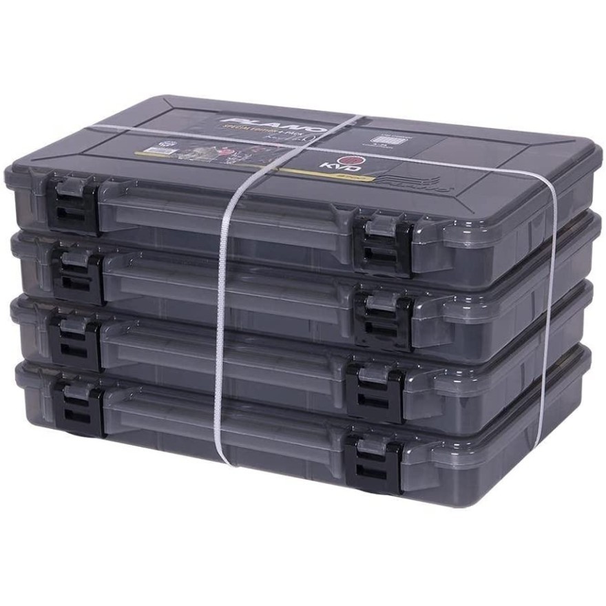 Set de 4 cutii pentru naluci si accesorii de la producatorul Plano. Cutiile au un design slim, sunt fabricate din plastic extrem de rezistent si durabil, fiind recomandate pentru depozitarea accesoriilor si nalucilor de pescuit. Cutiile dispun de un sistem de inchidere prevazut cu doua clapete rezistente la manipulari repetate. Acestea sunt compacte si rezistente, protejand eficient interiorul impotriva socurilor mecanice si a umezelii. Capacul transparent va permite sa evaluati rapid continutul cutiei.