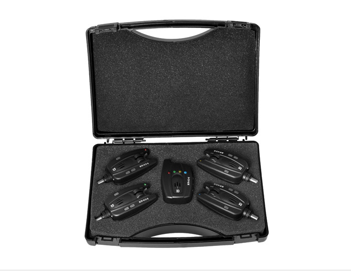Pe partea posterioara statia are amplasat un clip detasabil pentru fixare pe centura. Statia dispune de cinci niveluri de setare a volumului, inclusiv modul silentios, cat si de patru niveluri de setare a tonului. Dioda LED pentru semnalizarea pe timp de noapte, si testarea functiilor cu atentionare asupra bateriilor slabe sunt dotari suplimentare care vor fi apreciate cu siguranta de catre pescari. Alarma atentioneaza asupra scaderii starii bateriei sub 5V (de asemenea scoate un sunet si avertizorul) printr-un sunet scurt si luminatul diodelor LED.