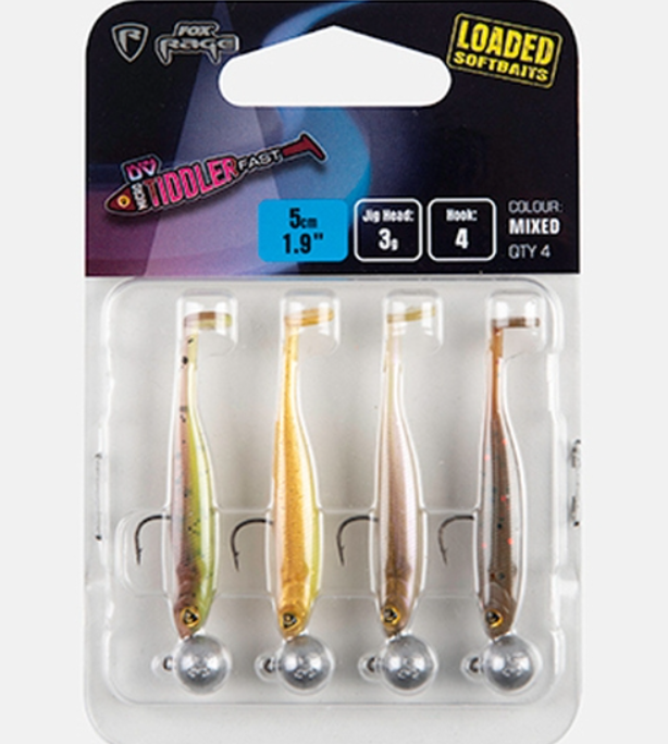 Fox Rage Micro Tiddler Fast Mixed UV Colour Pack Loaded Head este un set compus din patru shad-uri armate cu jiguri (3g) special proiectate pentru pescuitul atat la salau cat si la biban. Vibratia pronuntata provocata de coada tip "ciocan" creeaza o actiune plina de viata, chiar si la recuperari lente. Se recomanda utilizarea cu offseturi, permitand un pescuit de finete, prin explorarea zonelor cu obstacole dure, vegetatie submersa sau bradis, sau cu jiguri cand pescuiti in zona substratului. Culorile sunt reactive cand sunt expuse la radiatiile UV.