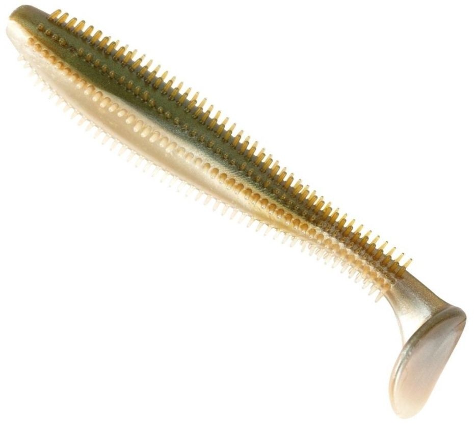 Shad-ul este turnat prin injectie, cu un amestec de cauciuc super-moale, care da forma aerodinamica si o miscare foarte atractiva, chiar si cu cea mai lenta viteza de preluare. Este o arma letala pentru stiuca, salau, biban si bas negru, atunci cand pescuieste cu un cap de jig.
