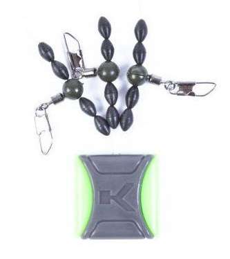 Două opritoare mari de prindere sunt folosite de fiecare parte a unui pivot rotativ Bead Link, pentru o configurație super sigură de pescuit cu plutitor.