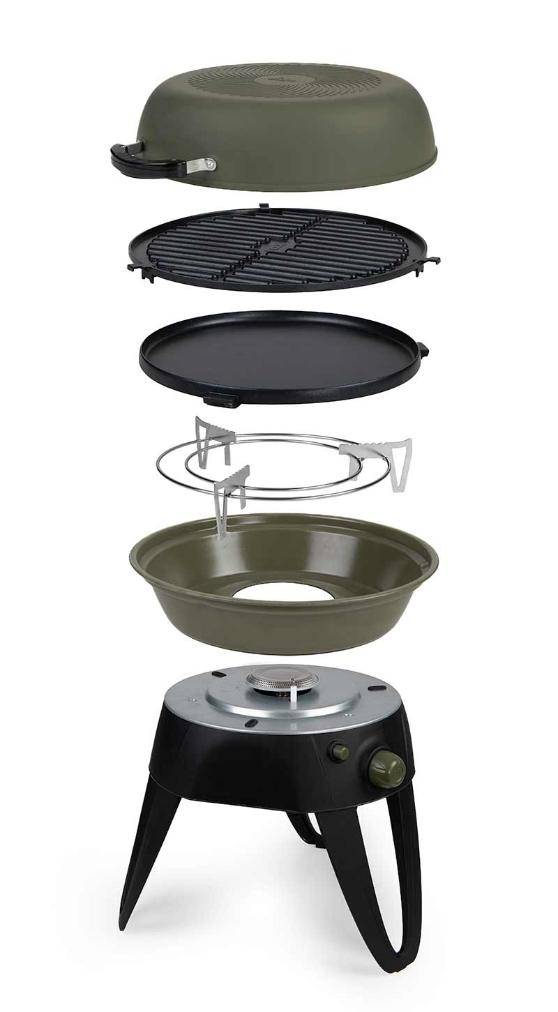 Noul FOX Cookware Cookstation este un sistem complet de gătit cu funcționare pe gaz.Modelul are un design pliabil, compact ,adaptandu-se nevoilor pescarului actual.Sistemul este compus din aragaz cu configurație standard,placă solidă griddle(non-aderentă),tablie grătar(non-aderentă),capac (non-aderent) .Capacul poate fi folosit atat ca tigaie mare dar si pentru a forma un cuptor închis.Arzatorul este prevazut cu aprindere piezo-electrică.Arzatorul este prevazut cu buton de aprindere si reglaj al volumului flacarii.Sistemul este stabil ,fiind prevazut cu trei picioare solide.