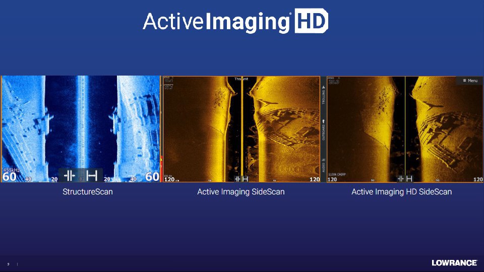 - Tehnologii sonar suportate: CHIRP, SideScan, DownScan, Active Imaging HD, ActiveTarget (in functie de sonda)