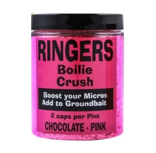 Ringers Boilie Crush nu este altceva decat varianta sfaramata a boiliesurilor din aceeasi gama ce se poate folosi drept aditiv pentru mixul de method, care introdus in nada sau in micropelete confera un plus de aroma si culoare si, de asemenea, elimina un nor de atractie la contactul cu apa.