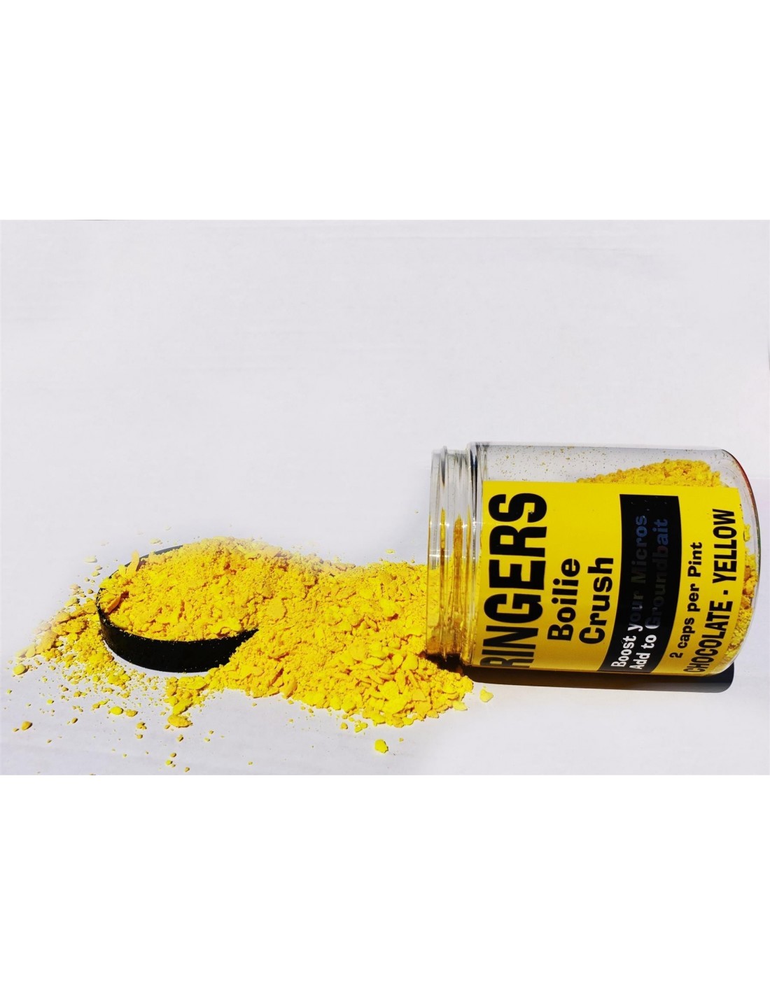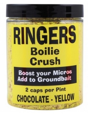Ringers Boilie Crush nu este altceva decat varianta sfaramata a boiliesurilor din aceeasi gama ce se poate folosi drept aditiv pentru mixul de method, care introdus in nada sau in micropelete confera un plus de aroma si culoare si, de asemenea, elimina un nor de atractie la contactul cu apa.