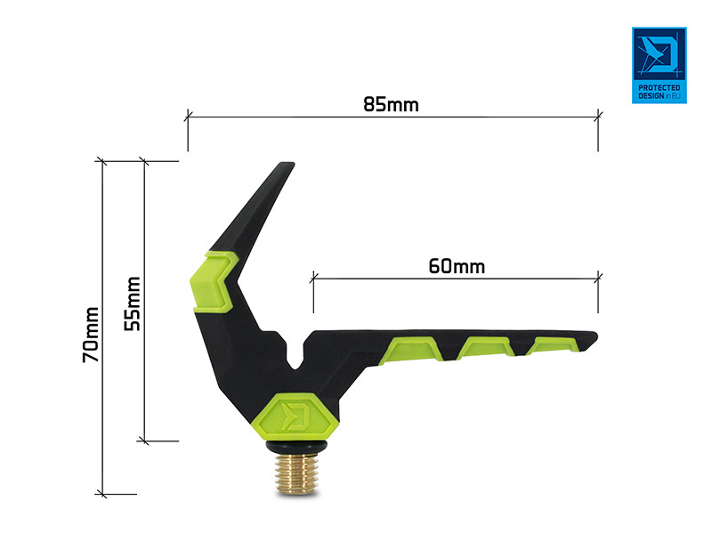Este prevăzut cu o canelură pentru o trecere îmbunătățită a firului, pentru a elimina frecarea liniei. Suprafața este acoperită cu un material din cauciuc care protejează lanseta împotriva deteriorării. Suportul este fabricat din materiale rezistente, astfel încât nu se va deteriora sau zgâria ușor. Are un filet universal compatibil cu toate brațele, suporturile și picheții standard. O parte din cauciuc de pe filet împiedică rotirea suportului.