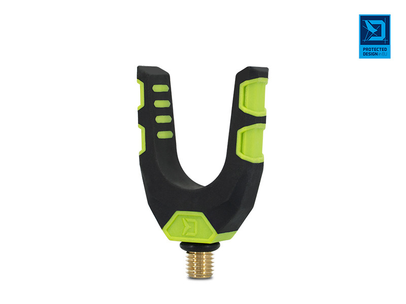 Un suport de bază pentru lansetă în formă de "U", conceput în culorile seriei noastre inovatoare de feeder Delphin Reaxe. Este foarte bine realizat, robust și durabil. Forma "U" permite utilizarea lansetelor cu diferite diametre ale mânerului. Suprafața este acoperită cu un material din cauciuc care protejează lansetele împotriva deteriorării. Suportul este fabricat din materiale rezistente, astfel încât nu se va deteriora sau zgâria foarte repede. Are un filet universal compatibil cu toate brațele, suporturile și picheții standard. O parte din cauciuc pe filet împiedică rotirea suportului.