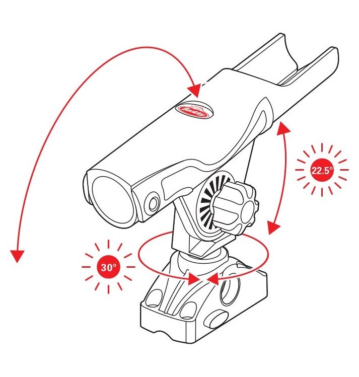 Suport pentru lansetă reglabil, conceput pentru a găzdui atât mulinete de spinning, cât și de troling. Și cel mai bun lucru? Puteți să vă ridicați lanseta și să setați cârligul, fără a fi nevoie să scoateți mai întâi lanseta, datorită unui sistem unic de pivotare. Furnizat cu o bază de montare Berkley cu blocare.