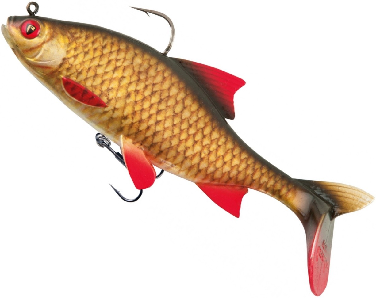 Swimbait-ul are dimensiunea de 14cm, greutatea de 45g, iar corpul aerodinamic se termina cu o coada super-flexibila, ce emite vibratii puternice in apa, irezistibile in fata oricarui pradator. Naluca este disponibila in 3 palete de culori super naturale, extrem de realiste, ce imita la perfectie miscarea unei rosioare in apa.