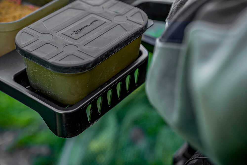 Tava laterala Allrounder este plina de functii. Dispune de adancituri de dimensiunea Blox si Bait Tub, un suport pentru pahare si suport Rig Rack incorporat. Tava dispune de sistem Any Chair si este furnizata cu insertii de 23mm, 25mm si 30mm si patrate de 23mm. Compatibil cu scaunele Korum X25, S23.