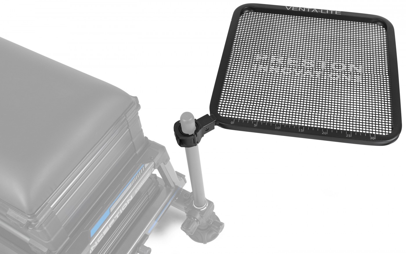 Preston Offbox 36 Venta-Lite Multi Side Tray este o tava extrem de versatila ce poate fi folosita intr-o gama larga de aplicatii (tava laterala convetionala pe partea laterala a unui scaun, ca o a doua tava laterala "de colt" sau ca tava in partea din spate). Tava dispune de o greutate redusa fiind realizata cu o plasa din aluminiu, care ajuta, de asemenea, sa va mentineti momeala in conditii optime. Tava laterala Preston Offbox 36 Venta-Lite Multi Side Tray dispune de un nou sistem de prindere pe care cei de la Preston l-au dezvoltat pentru a facilita montarea si demontarea intr-un timp foarte scurt. Este compatibila cu majoritatea modelelor de scaune modulare de pe piata folosind insertiile furnizate (23mm, 25mm, 30mm) sau 36mm fara insertie.