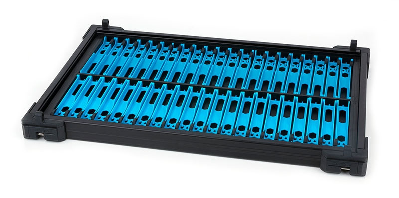 Tava modulara + 42 suporturi pentru stocarea monturilor sau a liniilor de pescuit. Tava modulara este robusta, proiectata sa se potriveasca direct in unitatea de stocare MATRIX a tavilor de dimensiuni mici. Dispozitivul de tensionare elimina utilizarea ancorelor de cauciuc. Fiecare dispozitiv de infasurare are un stift de fixare pentru carlig, si o bucla pentru atasarea firelor. Usor de indepartat bobinele individuale prin intermediul filei de prindere. Dimensiunea suporturilor este de 13cm, iar tava contine 42 de dispozitive de culoare albastru deschis.