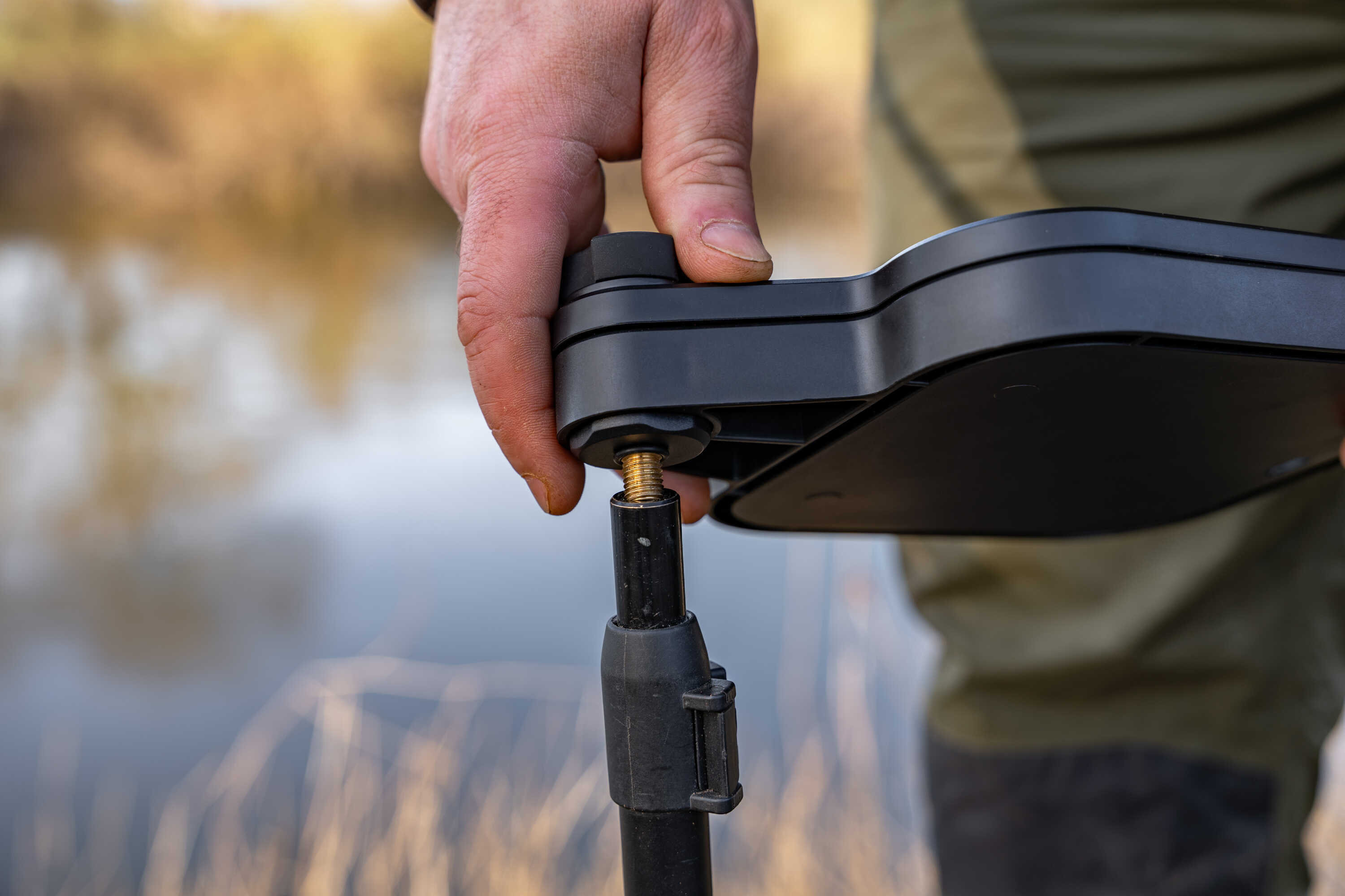 - Poate fi instalata pe picheti, tripozi sau pe bratul scaunului.