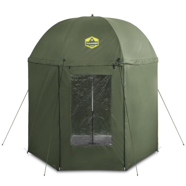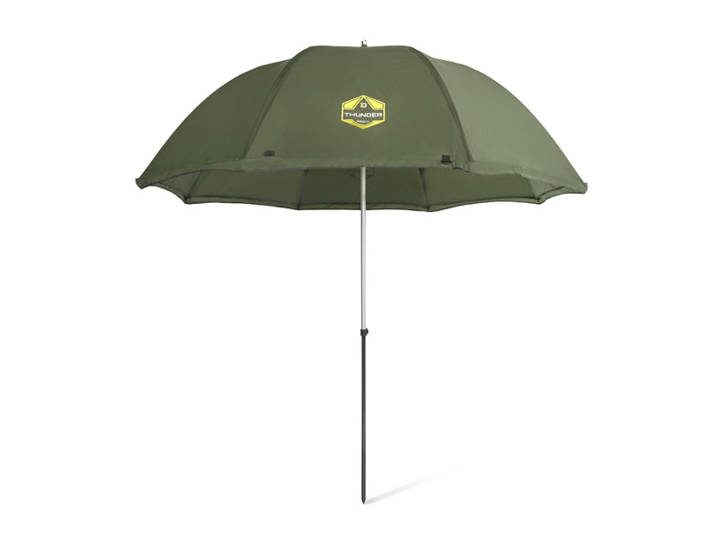 Umbrela Delphin Thunder FullWall cu pereti laterali complet inchisi, este alegerea ideala pentru vreme nefavorabila in timpul partidelor de pescuit. Ofera protectie impotriva soarelui, dar si precipitatiilor abundente. Pentru o mai buna stabilitate in bataia vantului, este echipata cu patru corzi de ancorare. Cusaturile umbrelei sunt lipite temeinic cu banda impermeabila pentru a asigura o protectie 100% chiar si in caz de ploaie puternica.
