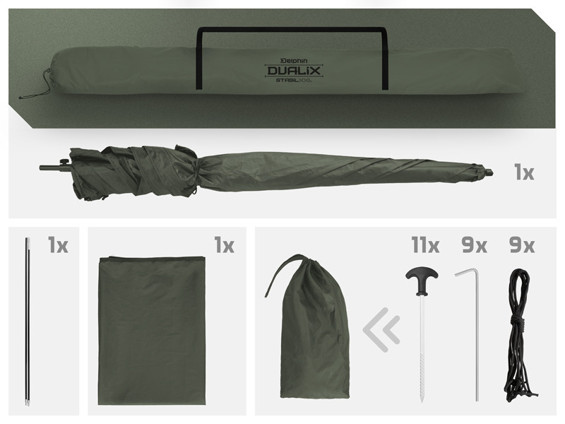 Umbrela Delphin DualiX STABIL este un model premium care oferă un spațiu generos și un nivel ridicat de confort, devenind adăpostul ideal în timpul partidelor de pescuit. Oferă protecție eficientă împotriva ploii, vântului și razelor solare, fiind partenerul perfect chiar și pentru sesiunile de lungă durată.