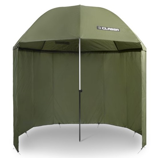 Umbrela cu paravan, ideala petru partidele de pescuit din zilele de vara toride. Cand soarele devine mult prea puternic, puteti monta umbrarul de jur imprejurul umbrelei prin simpla atasare prin sistemul fermoar. Pentru o rezistenta sporita in cazul unei rafale de vant, umbrela are bratele interne intarite. Pe cusaturile umbrelei este aplicata banda rezistenta la apa pentru asigurarea optima a impermeabilitatii.