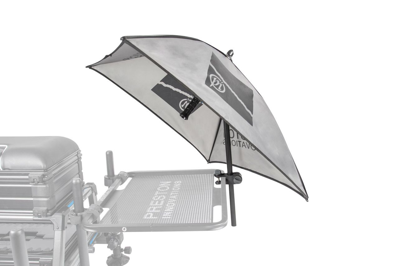 Preston Bait Brolly este o umbrela speciala ce protejeaza eficient nadele si momeli de razele soarelui, impiedicand astfel deshidratarea acestora. Crearea unei zone de umbra deasupra momelilor si nadelor pentru a le proteja de soare, vant si ploaie, influenteaza in mod direct rezultatul unei partide de pescuit. O ploaie pe neasteptate poate duce nada la un grad de umectare ce o face de nefolosit sau in cel mai " bun caz" ii schimba mecanica printr-o umectare suplimentara, pana la gradul la care nu mai este eficienta pentru tipul de pescuit practicat. Este livrat si un suport (adaptor), proiectat special pentru atasarea la tavile laterale din gama Preston. Unghiul de inclinare poate ajunge la 45° prin infiletarea tijei intr-un locas special conceput in acest sens.