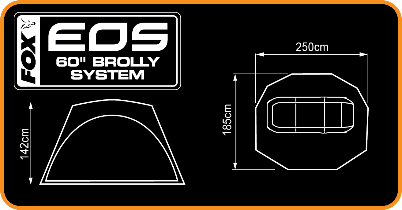 Noul EOS Brolly System a fost proiectat sa ofere o umbrela-cort pentru partide de pescuit cu toate accesoriile necesare. EOS Brolly System este alegerea ideala pentru pescarii tineri, pentru cei aflati la inceput de drum sau pentru cei ce isi doresc calitatea inegalabila FOX fara a depasi limitele bugetului. Umbrela tip cort este confectionata din polyester 100% cu factor hidrostatic 8000mm coloana de apa. Este prevazuta cu usa frontala cu fermoare care se deschid in ambele sensuri, panoul frontal poate fi rulat pentru a crea un adapost deschis, cadru de sustinere oval din inox.