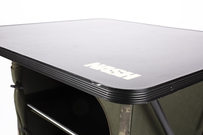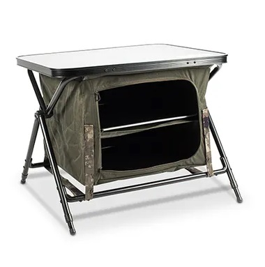 Nash Bank Life Dining Station este o masa cu design pliabil ce dispune de un cadru foarte rezistent in forma de X. Suprafata mesei permite ca patru persoane sa stea confortabil in jurul ei pentru a manca si a socializa. Este echipata cu o unitate de depozitare interna alcatuita din doua rafturi ridige cu acces din ambele parti. Picioarele reglabile cu blocaj prin rasucire asigura o stabilitate excelenta pe orice tip de teren. Masa este livrata intr-o geanta de transport pentru o incarcare si descarcare usoara.