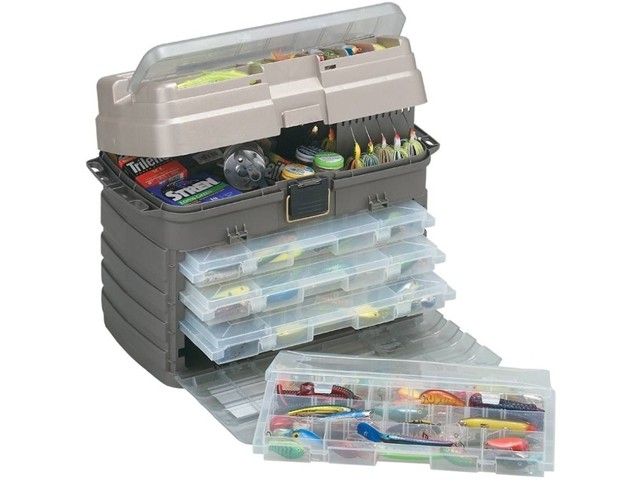 Plano Guide Series Stowaway Rack System este o valigeta fabricata din material plastic rezistent la socuri mecanice si actiunea coroziva a apei. Valigeta incude 4 cutii Plano 3700 ce sunt stocate in sistemul de sertare retractabile din partea de jos a acesteia, fiecare fiind impartita in numeroase compartimente. Clapetele din plastic inchid etans valigeta, fiind concepute sa reziste la manipulari repetate.