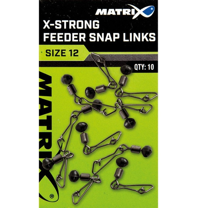 Vartej de tip rolling cu margea big head culisanta din gama MATRIX, destinat pescuitului la feeder/match, fiind prevazut cu agrafa X-Strong de care se va atasa cosuletul (daca pescuim la feeder) sau waggler-ul (daca pescuim la match). Agrafa de tip Snap Lock securizeaza waggler-ul sau cosuletul in timpul lanseurilor. Intreg ansamblul este fabricat din otel inoxidabil tratat anticoroziv, iar finisajul nichelat ii confera un camuflaj discret pe substrat. Acest tip de ansamblu vartej-agrafa X-Strong este special conceput pentru aruncari la distante apreciabile cu plumbi sau cosulete de greutati apreciabile.
