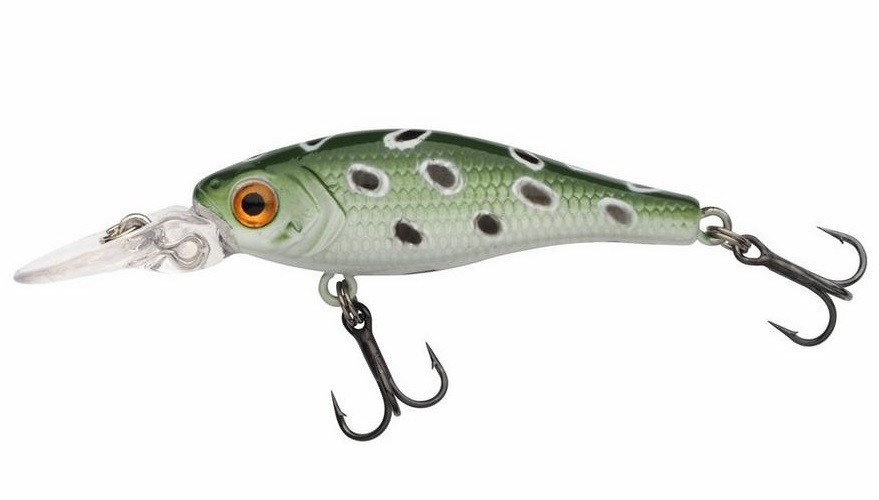 Cei doi ochi ai acestui vobler redau reflexii diferite, intocmai cum se intampla in realitate, ceea ce ofera o atractie suplimentara. Datorita dimensiunilor reduse, naluca este ideala pentru pescuitul pastravului, salaului sau al bibanului.