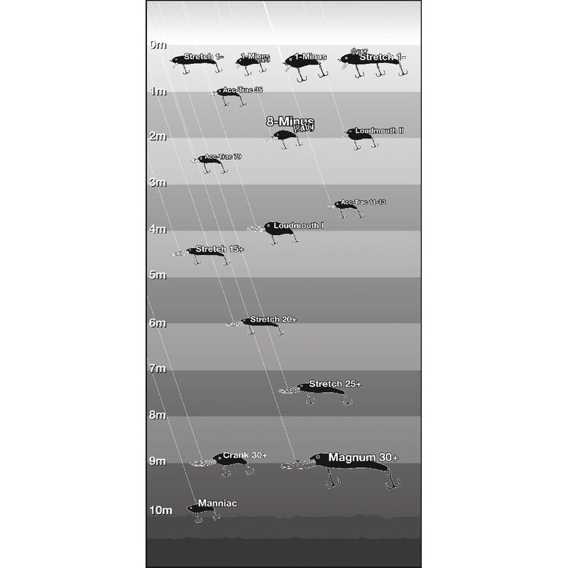 Mic, gros și absolut de încredere atunci când vine vorba de pescuitul pe fundul cu buruieni al apei care nu este prea puțin adâncă. 8-Minus gestionează cu dificultate un pescaj de doar 2,40 metri, dar are o flotabilitate mare și. Perfect pentru aruncare și derulare. Datorită formei sale compacte, ca toate voblerele Minus groase, zboară ca o rachetă – chiar și în vânt transversal puternic.