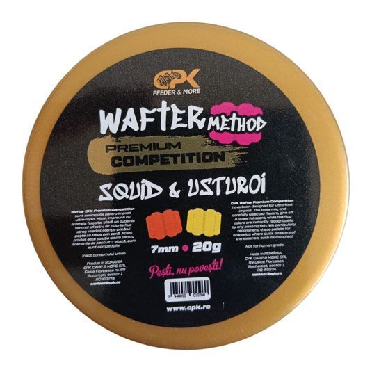 Perfecti pentru pescuitul competitiv si recreativ, Wafters CPK Competition Method sunt solutia ideala pentru atragerea crapului, bibanului si a altor specii. Comanda acum si transforma-ti sesiunile de pescuit in adevarate experiente de succes!