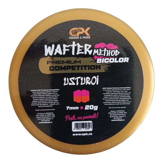 Descopera Wafters CPK Competition Method, momeli premium pentru pescuit feeder, momeli de carlig de inalta performanta, concepute pentru a atrage chiar si pestii cei mai reticenti. Aceste momele combina flotabilitate ridicata cu un mix complex de arome si culori vii, asigurand un impact vizual si olfactiv irezistibil.